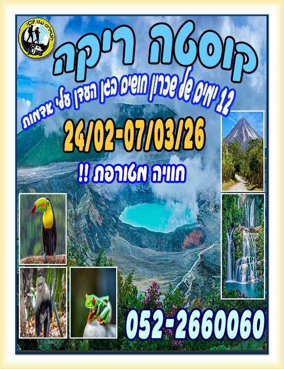 24/02-07/03/26- מסע 4X4 אל גן העדן קוסטה ריקה 12 ימים של שכרון חושים במסע ג'יפים מטורף בקוסטה ריקה גן עדן זה לא מילה !! טיולים חוויות הרפתקאות וריגושים