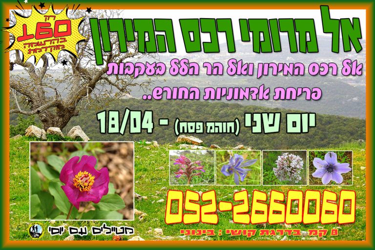 בהמשך נצא למסלול מרהיב שם נהנה ממזג האוויר האביבי ומפריחתו וממלא תפארתו של הר הלל ורכס המירון המוריק והפורח ..